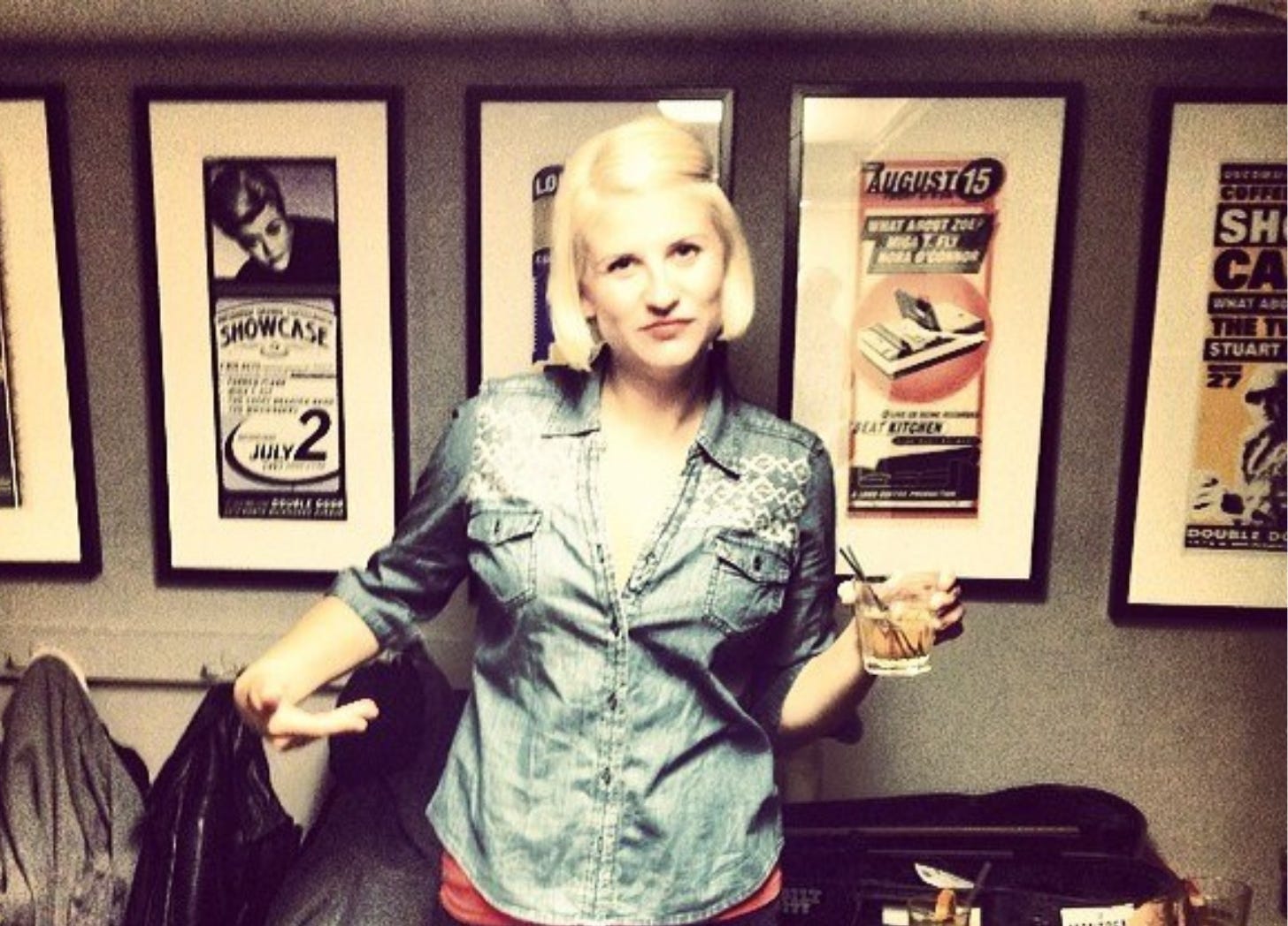 The author in ~2014 backstage with a bourbon and club soda.